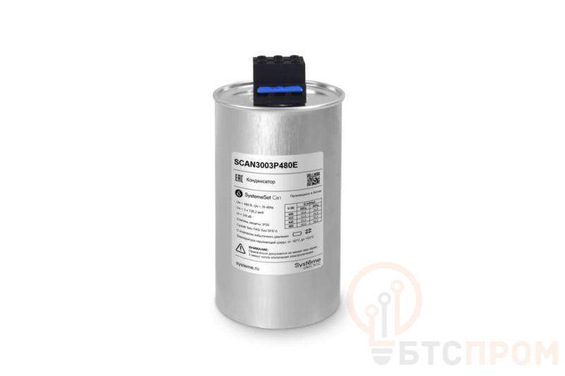 Низковольтный трёхфазный конденсатор торговой марки Systeme Electric серии SystemeSet типа Can предназначен для компенсации реактивной мощности. Силовой конденсатор представляет собой три однофазных конденсатора, собранных в единую конструкцию. В конденсаторах в качестве диэлектрика используется металлизированная полипропиленовая плёнка с функцией самовосстановления. В конструкцию конденсатора также входят: предохранитель с мембраной избыточного давления, клеммный блок с разрядным резистором. Корпус конденсатора выполнен из экструдированного алюминия. В качестве пропитки используется сухая биоразлагаемая смола без ПХБ, без SF6. Номинальная мощность 30 кВАр, номинальное напряжение 480В; температура окружающей среды от -40°C до +55°C; Ф116; длительно выдерживаемый ток 1,5In; максимальный пусковой ток 400In; степень защиты IP20.