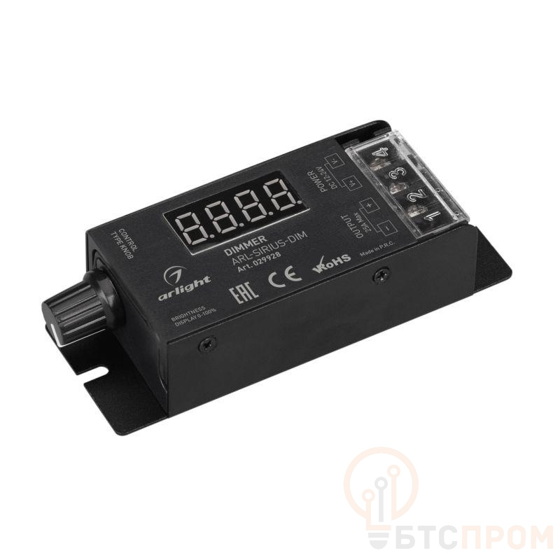 Миниатюрный диммер SIRIUS для одноцветной светодиодной ленты (ШИМ). Питание/рабочее напряжение 12-24VDC, максимальный ток 25A, 1 канал, максимальная мощность 300-600W. Корпус - металл чёрного цвета. Поддерживает диммирование роторным вращателем на корпусе. Изменяемая частота ШИМ (PWM) от 500Hz до 15.6KHz. Габариты 103х40х24 мм. Связь с пультом по радиосигналу 2.4G. Совместимые пульты см. в сопутствующих товарах.