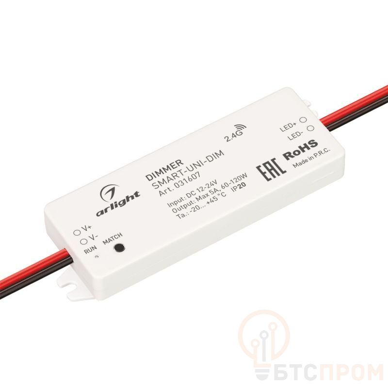 Диммер для монохромной светодиодной ленты (ШИМ). Питание/рабочее напряжение 12-24VDC, максимальный ток 5A на канал, 1 канал, максимальная мощность 60-120W. Корпус - PVC. Габариты 64х23.5х8.5 мм. Управляется пультами и панелями серии SMART (поставляются отдельно). !!!Актуальная схема привязки пультов в инструкции на сайте!!!