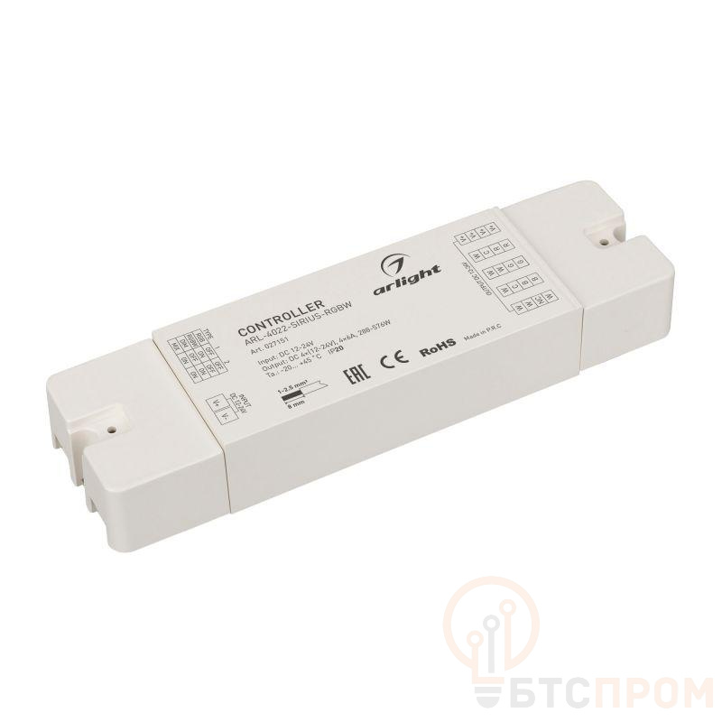 Контроллер для светодиодной ленты (ШИМ). 4 в 1, подходит для DIM/MIX/RGB/RGBW лент. Питание/рабочее напряжение 12-24VDC, максимальный ток 6A на канал, 4 канала, максимальная мощность 288-576W. Винтовые клеммы. Корпус - PVC. Габариты 162х54х25 мм. Совместимые пульты см. в сопутствующих товарах.