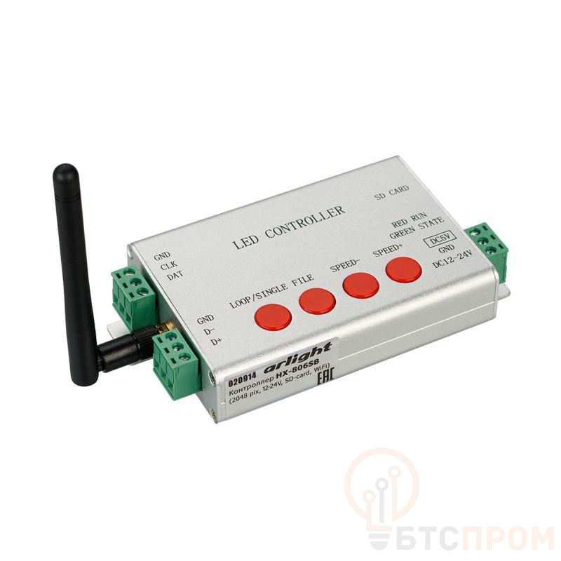 Контроллер для лент RGB «Бегущий огонь» и управляемых модулей, протокол SPI и DMX512. Напряжение 5–24 В, 1 выходной порт, до 2048 пикселей, запись программ на SD-карту (ПО LED Build). Управление по Wi-Fi c мобильных устройств Android ПО LEDPDF.. Размер 150х82х38 мм. Список поддерживаемых микросхем см. в Таблице микросхем. Приложение доступно только для Android.