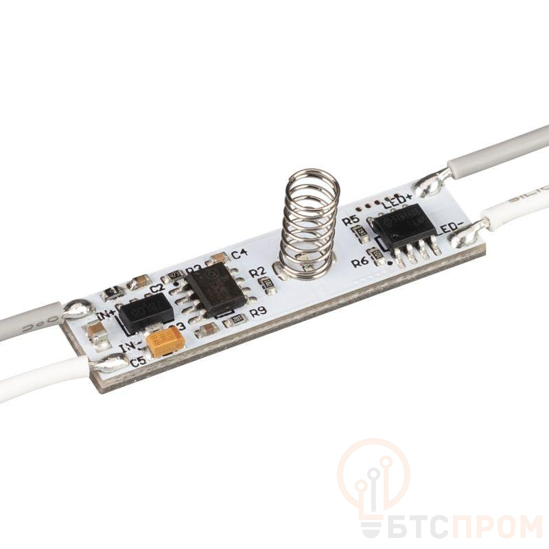 Сенсорный диммер с подсветкой (есть возможность регулировки яркости и отключение подсветки зоны сенсора), встраиваемый в профиль. Реагирует на прикосновение к экрану. Короткое нажатие - плавное включение и выключение света. Длинное нажатие - плавное изменение яркости свечения. Для профилей с внутренней высотой 10мм. 12-24V, 5A. Размер 38x10x12мм. Провода УЖЕ припаяны (как на фото). Есть функция памяти последней установки.