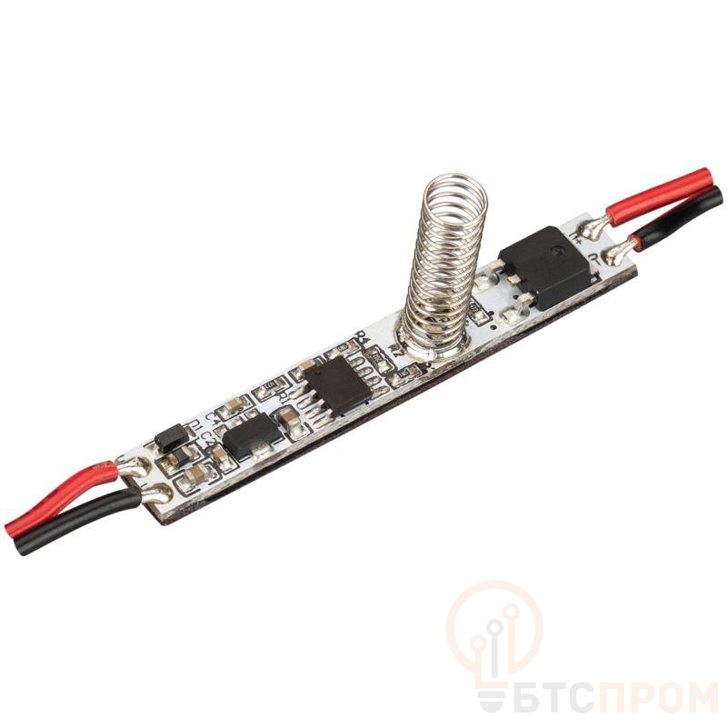 Диммер для монохромной светодиодной ленты (ШИМ), встраиваемый в алюминиевый профиль. Питание/рабочее напряжение 12-24VDC, максимальный ток 3A на канал, 1 канал, максимальная мощность 36-72W. Габариты 50x8x20 мм, высота пружины 20 мм. Включение/выключение и диммирование происходят через сенсор прикосновения.