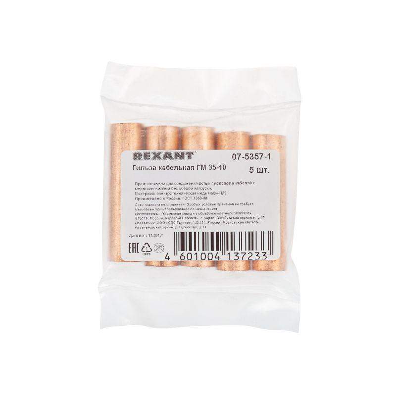 Кабельная медная гильза ГМ 35-10 (35мм2 - O 10 мм) предназначена для оконцевания проводов и кабелей с медными жилами методом опрессовки. Обеспечивает защиту кабелей от воздействия внешних факторов, таких как влага, пыль, химические вещества и механические повреждения. При изготовлении гильзы используется высококачественная медь марки М2, что обеспечивает отличную электропроводность и стабильную работу. Изделие имеет сквозную конструкцию. Изготавливается по ГОСТ 23469.3-79. Структура обозначения: Г — Гильза; М — Медь — материал, из которого изготовлена гильза; 35 — номинальное сечение гильзы, мм2; 50 — длина, мм; 12 — общий диаметр, мм; 10 — внутренний диаметр, мм.