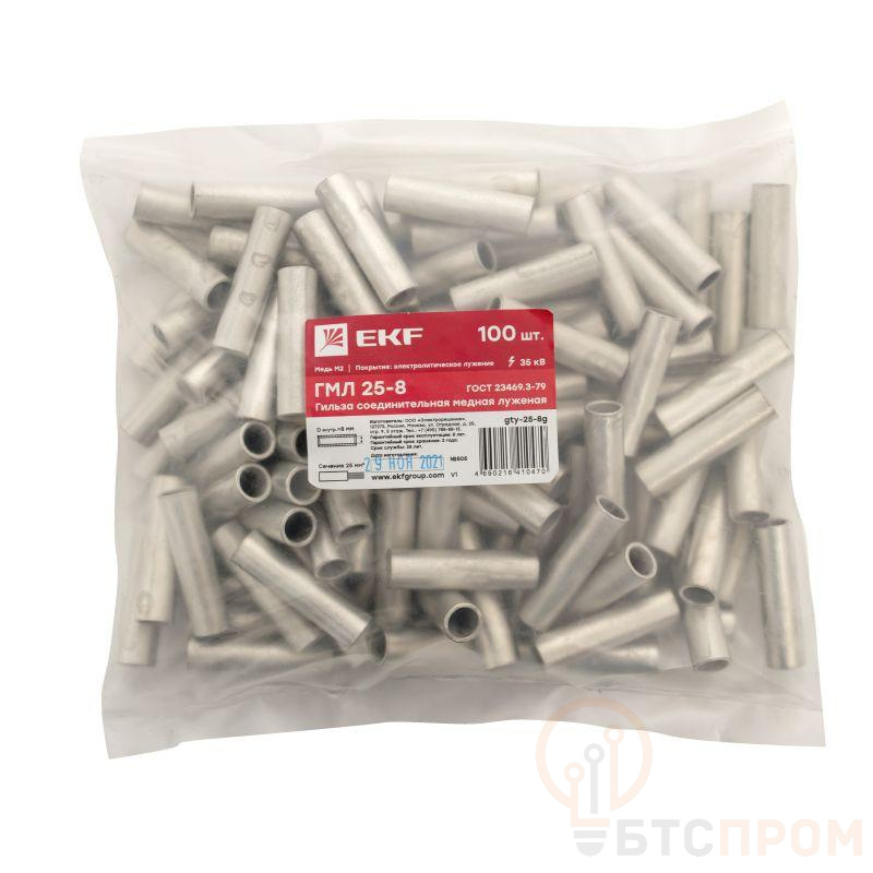 Гильза соединительная ГМЛ 25-8 луженая медн. (уп.2шт) PROxima EKF gty-25-8g-r фото в каталоге от BTSprom.by