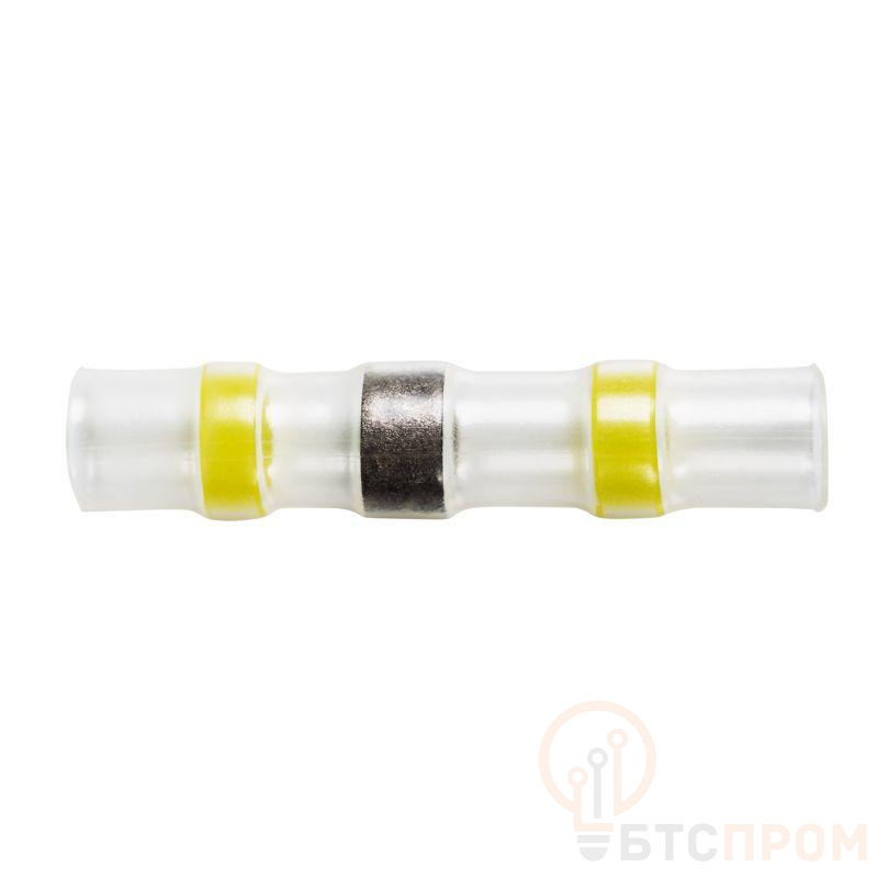 Соединитель термоусаживаемый под пайку (L-40 мм) 4.0-6.0 мм2 желтый REXANT предназначен для соединения медных многопроволочных проводов внахлест или встык методом термообработки. Нестандартный метод соединения проводов обусловлен особым конструктивным строением: - для обеспечения визуального контроля процесса монтажа применяется прозрачный материал изоляции; - в середине соединителя располагается гильза из низкотемпературного припоя оловянно-свинцовой группы; - с обеих сторон на внутренней поверхности термоусаживаемой трубки располагаются клеевые полосы, обеспечивающие герметичность соединения после усадки. Основные характеристики: Сечение применяемых медных многопроволочных проводов: 4.0-6.0 мм2 Длина соединителя: 40 мм Допустимое предельное напряжение: 690 В Термостойкость изоляционного материала: 125 °C Влагозащита: IP67 Материал изоляции: сшитый полиэтилен, без галогенов Цвет термоплавких клеевых полосок: желтый Для достижения наилучшего результата необходимо осуществлять прогрев кольца припоя равномерно со всех сторон до расплавления вокруг контактного соединения жил проводов.