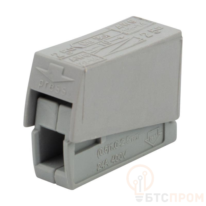 Клемма строительно-монтажная СМК 224-101 1-проводная 1.0-2.5/0.5-2.5кв.мм для светильника сер. (уп.100шт) Rexant 07-2401