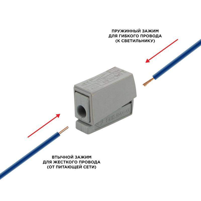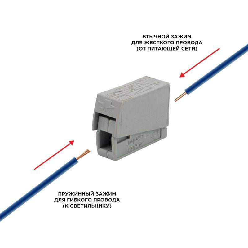 Клемма строительно-монтажная СМК 224-101 1-проводная 1.0-2.5/0.5-2.5кв.мм для светильника сер. (уп.10шт) Rexant 07-2401-10