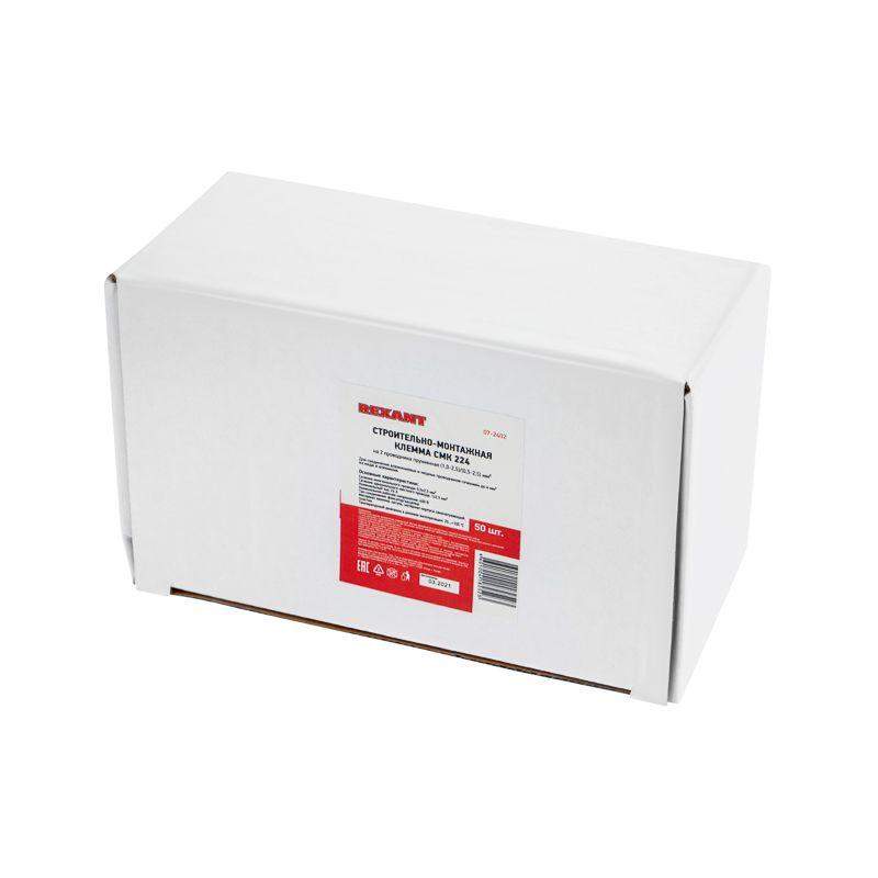 Клемма строительно-монтажная СМК 224-201 2-проводная 1.0-2.5/0.5-2.5кв.мм для светильника сер. (уп.50шт) Rexant 07-2402