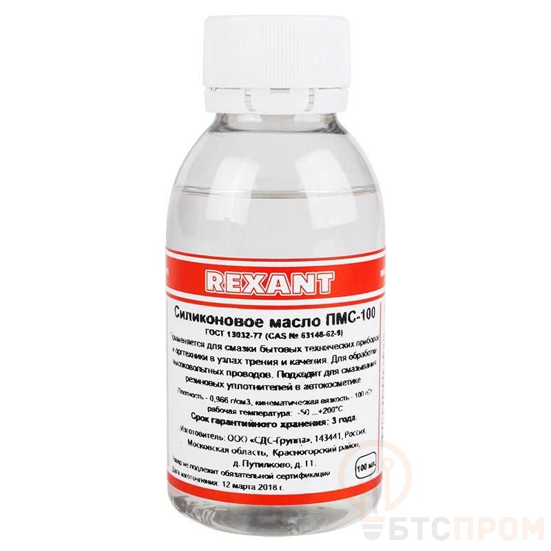 ПолиМетилСилоксановая жидкость ПМС-100 (ГОСТ 13032-77) REXANT — бесцветная прозрачная химически инертная и коррозионностойкая силиконовая жидкость без запаха. В отличие от минеральных или синтетических масел, данная жидкость обладает превосходными электроизоляционными, антиадгезионными и пеногасящими свойствами. Область применения: Для смазки резиновых уплотнений и обработки высоковольтных проводов. На производстве при эксплуатации пресс-форм РТИ и пластмасс, для образования разделяющего действия между разными поверхностями (металл-пластик, пластик-резина и т. п.). Как добавка в политуры и различные средства бытовой химии. В форме гидравлической, амортизационной или демпфирующей жидкости. Основные свойства: Жидкости ПМС стойки к высоким и низким температурам, не образуют остатков на обрабатываемых поверхностях, предотвращают прилипание термопластичных материалов друг к другу. Стабильность физических свойств жидкостей ПМС в широком диапазоне рабочих температур –40...+200 °С Отличные характеристики вязкости/температуры, высокая сжимаемость и сопротивление сдвигу. Жидкости ПМС придают отличные свойства скольжения и гидрофобности пластмассам и резинам, уменьшают трение поверхностей. Электрические характеристики жидкостей ПМС практически неизменны при высоких и низких температурах в широком диапазоне частот. Образуют гидрофобную защитную пленку. Стойкость к радиации. Низкое поверхностное натяжение, сильные гидрофобные свойства. Температура застывания ниже –60 °С Основные характеристики: Кинематическая вязкость: 100сСт Объем: 100 мл Нормы по ГОСТ 13032-77: Внешний вид: бесцветная прозрачная жидкость Содержание механических примесей : отсутствуют Кинематическая вязкость при 20 °С: (192 – 208). 10-6/192–208 м2/с (сСт) Кинематическая вязкость при –50 °С, м2/с (сСт), не более: не определяют Кинематическая вязкость при –60 °С, м2/с (сСт), не более: не определяют Динамическая вязкость при –50 °С, не более: 2000 Па.с (сП) Температура вспышки в открытом тигле, не ниже: 316 °С Температура застывания, не выше: –62 °С Реакция среды (рН водной вытяжки): 6,2-7,0 Массовая доля кремния: 37,0-38,5 % Массовая доля воды, не более: 0,004 % Безопасность: Жидкость ПМС-100 экологически безопасна, не вызывает раздражения, аллергии, взрывобезопасна и нетоксична.