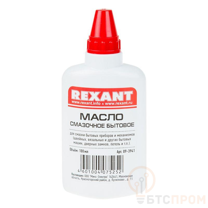 Масло смазочное бытовое 100 мл (масленка) REXANT предназначено для смазывания узлов и деталей в домашних условиях (замков, ножниц, скрипучих петель, крепежных элементов, механизмов швейных машин и велосипедов и т.п.), а кроме того, защитит обработанные детали от коррозии. Такое универсальное масло должно быть в каждом доме. Удобная для хранения пластиковая тара с дозатором (масленка) обеспечит многоразовое пользование в течение долгого периода. Характеристики: Тип упаковки: масленка многоразовая с капельницей Объем: 100 мл Меры предосторожности: не допускать попадания внутрь; хранить в плотно закрытой таре отдельно от пищевых продуктов, в местах недоступных для детей и домашних животных.