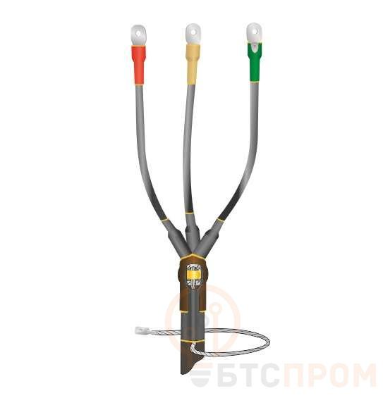 МУФТА КОНЦЕВАЯ ТЕРМОУСАЖИВАЕМАЯ МАРКИ 1ПКВ(Н)Тпб-3х(35-50) ВНУТРЕННЕЙ И НАРУЖНОЙ УСТАНОВКИ предназначена для оконцевания 3-х жильных силовых кабелей сечением 35, 50 кв.мм с пластмассовой изоляцией с броней на напряжение до 1 кВ включительно. Универсальна в использовании. Может быть установлена как внутри помещений всех категорий влажности, так и на открытом воздухе при температуре окружающей среды от -50град.С до +50град.С и относительной влажности до 98%. Соответствует требованиям ГОСТ 13781.0-86 и ТУ Нева-Транс 3599-012-31930690-2016. Прошла необходимый комплекс независимых испытаний, на основании которых выдан сертификат соответствия Госстандарта России. Монтируется на разделке кабеля методом термоусаживания основных деталей из модифицированного полимера, входящих в комплект муфты, с помощью горелки или высокотемпературного фена. Предусматривает крепление провода заземления к бронелентам кабеля с помощью пружины постоянного давления и терки. Имеет высокую эксплуатационную надежность и экологическую безопасность. Устойчива к ультрафиолетовому излучению и воздействию атмосферных осадков.