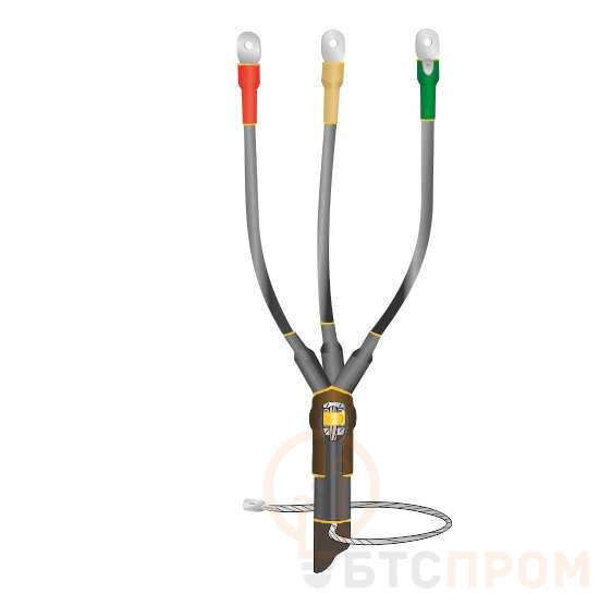 МУФТА КОНЦЕВАЯ ТЕРМОУСАЖИВАЕМАЯ МАРКИ 1ПКВ(Н)Тпбнг-LS-3х(150-240) ВНУТРЕННЕЙ И НАРУЖНОЙ УСТАНОВКИ предназначена для оконцевания 3-х жильных силовых кабелей сечением 150, 185, 240 кв.мм с пластмассовой изоляцией с броней на напряжение до 1 кВ включительно. Удовлетворяет самым строгим требованиям пожарной безопасности. Детали, входящие в комплект кабельной муфты, изготовлены на основе материалов, не распространяющих горение (нг) с пониженным дымо- и газовыделением (LS). Универсальна в использовании. Может быть установлена как внутри помещений всех категорий влажности , так и на открытом воздухе при температуре окружающей среды от -50град.С до +50град.С и относительной влажности до 98%. Соответствует требованиям ГОСТ 13781.0-86 и ТУ Нева-Транс 3599-012-31930690-2016. Прошла необходимый комплекс независимых испытаний, на основании которых выданы сертификаты соответствия требованиям пожарной безопасности и Госстандарта России. Монтируется на разделке кабеля методом термоусаживания основных комплектующих с помощью горелки или высокотемпературного фена. Предусматривает крепление провода заземления к бронелентам кабеля с помощью пружины постоянного давления и терки. Имеет высокую эксплуатационную надежность и экологическую безопасность. Устойчива к ультрафиолетовому излучению и воздействию атмосферных осадков.