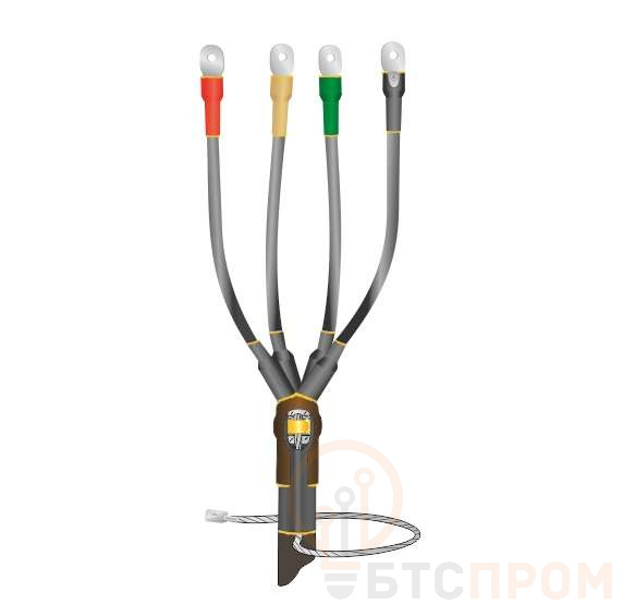 МУФТА КОНЦЕВАЯ ТЕРМОУСАЖИВАЕМАЯ МАРКИ 1ПКВ(Н)Тпбнг-LS-4х(70-120) ВНУТРЕННЕЙ И НАРУЖНОЙ УСТАНОВКИ предназначена для оконцевания 4-х жильных силовых кабелей сечением 70, 95, 120 кв.мм с пластмассовой изоляцией с броней на напряжение до 1 кВ включительно. Удовлетворяет самым строгим требованиям пожарной безопасности. Детали, входящие в комплект кабельной муфты, изготовлены на основе материалов, не распространяющих горение (нг) с пониженным дымо- и газовыделением (LS). Универсальна в использовании. Может быть установлена как внутри помещений всех категорий влажности , так и на открытом воздухе при температуре окружающей среды от -50град.С до +50град.С и относительной влажности до 98%. Соответствует требованиям ГОСТ 13781.0-86 и ТУ Нева-Транс 3599-012-31930690-2016. Прошла необходимый комплекс независимых испытаний, на основании которых выданы сертификаты соответствия требованиям пожарной безопасности и Госстандарта России. Монтируется на разделке кабеля методом термоусаживания основных комплектующих с помощью горелки или высокотемпературного фена. Предусматривает крепление провода заземления к бронелентам кабеля с помощью пружины постоянного давления и терки. Имеет высокую эксплуатационную надежность и экологическую безопасность. Устойчива к ультрафиолетовому излучению и воздействию атмосферных осадков.