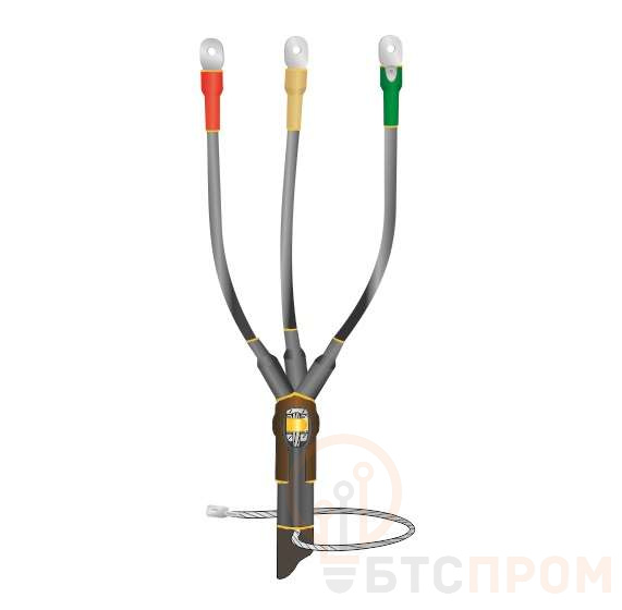 МУФТА КОНЦЕВАЯ ТЕРМОУСАЖИВАЕМАЯ МАРКИ 1ПКВ(Н)ТпбНнг-LS-3х(35-50) С НАКОНЕЧНИКАМИ БОЛТОВЫМИ ВНУТРЕННЕЙ И НАРУЖНОЙ УСТАНОВКИ предназначена для оконцевания 3-х жильных силовых кабелей сечением 35, 50 кв.мм с пластмассовой изоляцией с броней на напряжение до 1 кВ включительно. Удовлетворяет самым строгим требованиям пожарной безопасности. Детали, входящие в комплект кабельной муфты, изготовлены на основе материалов, не распространяющих горение (нг) с пониженным дымо- и газовыделением (LS). Универсальна в использовании. Может быть установлена как внутри помещений всех категорий влажности , так и на открытом воздухе при температуре окружающей среды от -50град.С до +50град.С и относительной влажности до 98%. Соответствует требованиям ГОСТ 13781.0-86 и ТУ Нева-Транс 3599-012-31930690-2016. Прошла необходимый комплекс независимых испытаний, на основании которых выданы сертификаты соответствия требованиям пожарной безопасности и Госстандарта России. Монтируется на разделке кабеля методом термоусаживания основных комплектующих с помощью горелки или высокотемпературного фена. Предусматривает крепление провода заземления к бронелентам кабеля с помощью пружины постоянного давления и терки. Имеет высокую эксплуатационную надежность и экологическую безопасность. Устойчива к ультрафиолетовому излучению и воздействию атмосферных осадков.