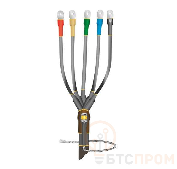 МУФТА КОНЦЕВАЯ ТЕРМОУСАЖИВАЕМАЯ МАРКИ 1ПКВ(Н)ТпбНнг-LS-5х(35-50) С НАКОНЕЧНИКАМИ БОЛТОВЫМИ ВНУТРЕННЕЙ И НАРУЖНОЙ УСТАНОВКИ предназначена для оконцевания 5-ти жильных силовых кабелей сечением 35, 50 кв.мм с пластмассовой изоляцией с броней на напряжение до 1 кВ включительно. Удовлетворяет самым строгим требованиям пожарной безопасности. Детали, входящие в комплект кабельной муфты, изготовлены на основе материалов, не распространяющих горение (нг) с пониженным дымо- и газовыделением (LS). Универсальна в использовании. Может быть установлена как внутри помещений всех категорий влажности , так и на открытом воздухе при температуре окружающей среды от -50град.С до +50град.С и относительной влажности до 98%. Соответствует требованиям ГОСТ 13781.0-86 и ТУ Нева-Транс 3599-012-31930690-2016. Прошла необходимый комплекс независимых испытаний, на основании которых выданы сертификаты соответствия требованиям пожарной безопасности и Госстандарта России. Монтируется на разделке кабеля методом термоусаживания основных комплектующих с помощью горелки или высокотемпературного фена. Предусматривает крепление провода заземления к бронелентам кабеля с помощью пружины постоянного давления и терки. Имеет высокую эксплуатационную надежность и экологическую безопасность. Устойчива к ультрафиолетовому излучению и воздействию атмосферных осадков.