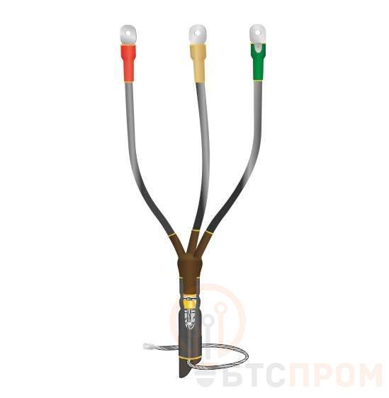 МУФТА КОНЦЕВАЯ ТЕРМОУСАЖИВАЕМАЯ МАРКИ 1КВТпНнг-LS-3х(150-240) С НАКОНЕЧНИКАМИ БОЛТОВЫМИ ВНУТРЕННЕЙ УСТАНОВКИ предназначена для оконцевания 3-х жильных силовых кабелей сечением 150, 185, 240 кв.мм с бумажной или с пластмассовой изоляцией, с броней или без брони, на напряжение до 1 кВ включительно. Универсальна в применении. Удовлетворяет самым строгим требованиям пожарной безопасности. Детали, входящие в комплект кабельной муфты, изготовлены на основе материалов, не распространяющих горение (нг) с пониженным дымо- и газовыделением (LS). Устанавливается внутри помещений всех категорий влажности. Соответствует требованиям ГОСТ 13781.0-86 и ТУ Нева-Транс 3599-012-31930690-2016. Прошла необходимый комплекс независимых испытаний, на основании которых выданы сертификаты соответствия требованиям пожарной безопасности и Госстандарта России. Монтируется на разделке кабеля методом термоусаживания основных комплектующих с помощью горелки или высокотемпературного фена. Предусматривает крепление провода заземления к металлической оболочке кабеля, имеющего бумажную изоляцию, с помощью пружины постоянного давления и терки, а к бронелентам методом пайки. Сочетает в себе высокую эксплуатационную надежность и экологическую безопасность.