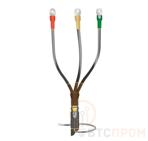 МУФТА КОНЦЕВАЯ ТЕРМОУСАЖИВАЕМАЯ МАРКИ 1КВТпНнг-LS-3х(70-120) С НАКОНЕЧНИКАМИ БОЛТОВЫМИ ВНУТРЕННЕЙ УСТАНОВКИ предназначена для оконцевания 3-х жильных силовых кабелей сечением 70, 95, 120 кв.мм с бумажной или с пластмассовой изоляцией, с броней или без брони, на напряжение до 1 кВ включительно. Универсальна в применении. Удовлетворяет самым строгим требованиям пожарной безопасности. Детали, входящие в комплект кабельной муфты, изготовлены на основе материалов, не распространяющих горение (нг) с пониженным дымо- и газовыделением (LS). Устанавливается внутри помещений всех категорий влажности. Соответствует требованиям ГОСТ 13781.0-86 и ТУ Нева-Транс 3599-012-31930690-2016. Прошла необходимый комплекс независимых испытаний, на основании которых выданы сертификаты соответствия требованиям пожарной безопасности и Госстандарта России. Монтируется на разделке кабеля методом термоусаживания основных комплектующих с помощью горелки или высокотемпературного фена. Предусматривает крепление провода заземления к металлической оболочке кабеля, имеющего бумажную изоляцию, с помощью пружины постоянного давления и терки, а к бронелентам методом пайки. Сочетает в себе высокую эксплуатационную надежность и экологическую безопасность.