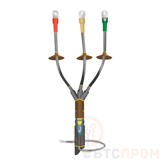 МУФТА КОНЦЕВАЯ ТЕРМОУСАЖИВАЕМАЯ МАРКИ 1КНТпнг-LS-3х(70-120) НАРУЖНОЙ УСТАНОВКИ предназначена для оконцевания 3-х жильных силовых кабелей сечением 70, 95, 120 кв.мм с бумажной или с пластмассовой изоляцией, с броней или без брони, на напряжение до 1 кВ включительно. Универсальна в применении. Удовлетворяет самым строгим требованиям пожарной безопасности. Детали, входящие в комплект кабельной муфты, изготовлены на основе материалов, не распространяющих горение (нг) с пониженным дымо- и газовыделением (LS). Устанавливается на открытом воздухе при температуре окружающей среды от -50град.С до +50град.С и относительной влажности до 98%, в том числе в качестве мачтовой. Соответствует требованиям ГОСТ 13781.0-86 и ТУ Нева-Транс 3599-012-31930690-2016. Прошла необходимый комплекс независимых испытаний, на основании которых выданы сертификаты соответствия требованиям пожарной безопасности и Госстандарта России. Монтируется на разделке кабеля методом термоусаживания основных комплектующих с помощью горелки или высокотемпературного фена. Оснащена жильными изоляторами, создающими на поверхности сухие зоны и увеличивающими длину путей токов утечки. Предусматривает крепление провода заземления к металлической оболочке кабеля, имеющего бумажную изоляцию, с помощью пружины постоянного давления и терки, а к бронелентам методом пайки. Сочетает в себе высокую эксплуатационную надежность и экологическую безопасность. Устойчива к ультрафиолетовому излучению и воздействию атмосферных осадков.
