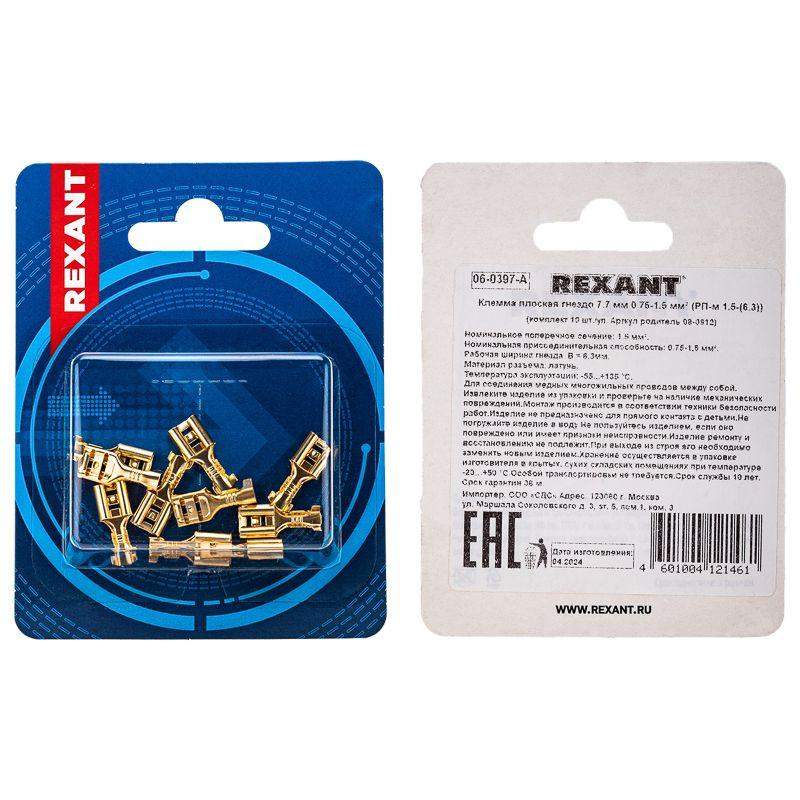 Клемма плоская (гнездо-7.7мм) 1-1.5кв.мм (РП-м 1.5-(6.3) / DJ622-D6.3B) (блист.10шт) Rexant 06-0397-A