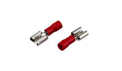 Клемма плоская изолированная (КПИ гнездо - 6.6 мм) 0.5-1.5 мм2 REXANT предназначена для создания качественного подключения электрооборудования или соединения проводов между собой, которое при необходимости возможно разъединить без лишних усилий. Такая клемма используется для оконцовывания многожильных медных проводов при монтаже мобильных электрических контактных соединений на подвижном составе (автомобиле-, вагоно-, самолето- и судостроении). Изолированная плоская клемма REXANT состоит из двух компонентов: металлического коннектора (гнездо) и защитного изолятора. Металлический коннектор изготовлен из латуни, с поверхностным электролитическим лужением, а изолятор клеммы - из поливинилхлорида (ПВХ), который надежно защищает место обжима кабеля. Обжатие производится специальными пресс-клещами (ht-301 H арт.12-3014, 12-3014; ht-301 N арт.12-3116; ht-301 W арт.12-3021, 12-3021-4) поверх защитного изолятора. Каждая клемма имеет фиксатор для более прочного механического соединения с штекерным разъемом. Цвет изолятора красный. Основные характеристики: Сечение применяемого провода в диапазоне: 0.5-1.5 мм2 Рабочая ширина штекера: B = 6.6 мм Максимальный ток: 10 А Температурный диапазон: -40…+80 ? Применение изолированных плоских клемм дает возможность существенно ускорять электромонтажные работы, при этом появляется возможность многократного отсоединения и присоединения проводов.