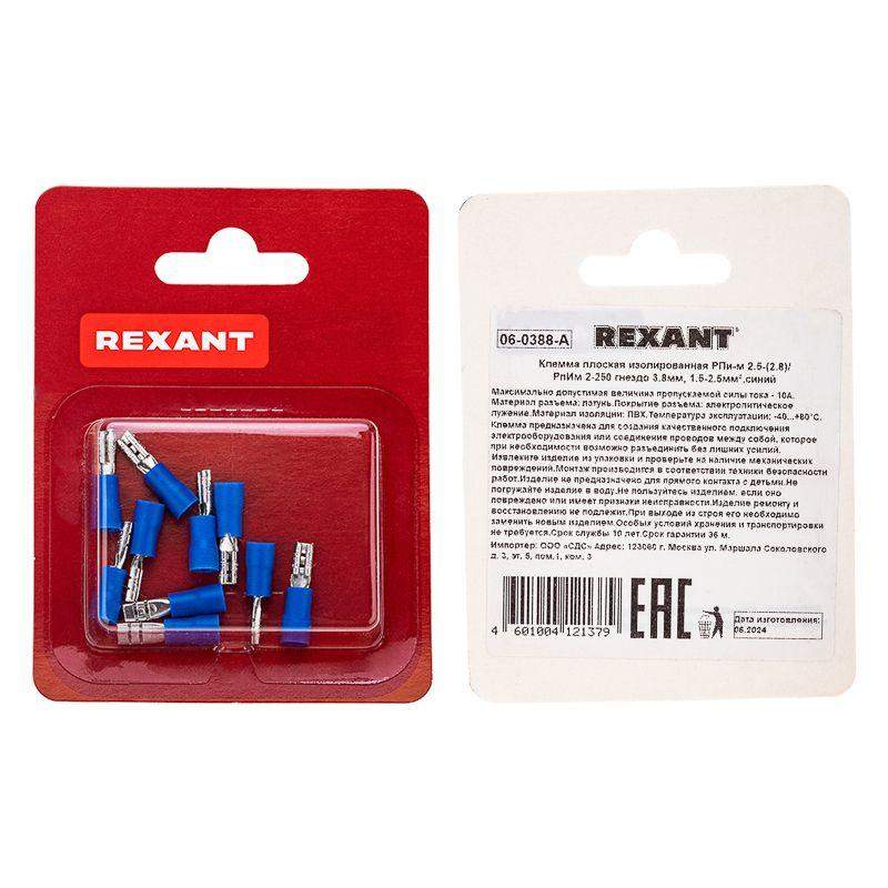 Клемма плоская изолированная (гнездо-3.8мм) 1.5-2.5кв.мм (РПи-м 2.5-(2.8) / РПИм 2-250 / FDD2-110(8)) (блист.10шт) Rexant 06-0388-A