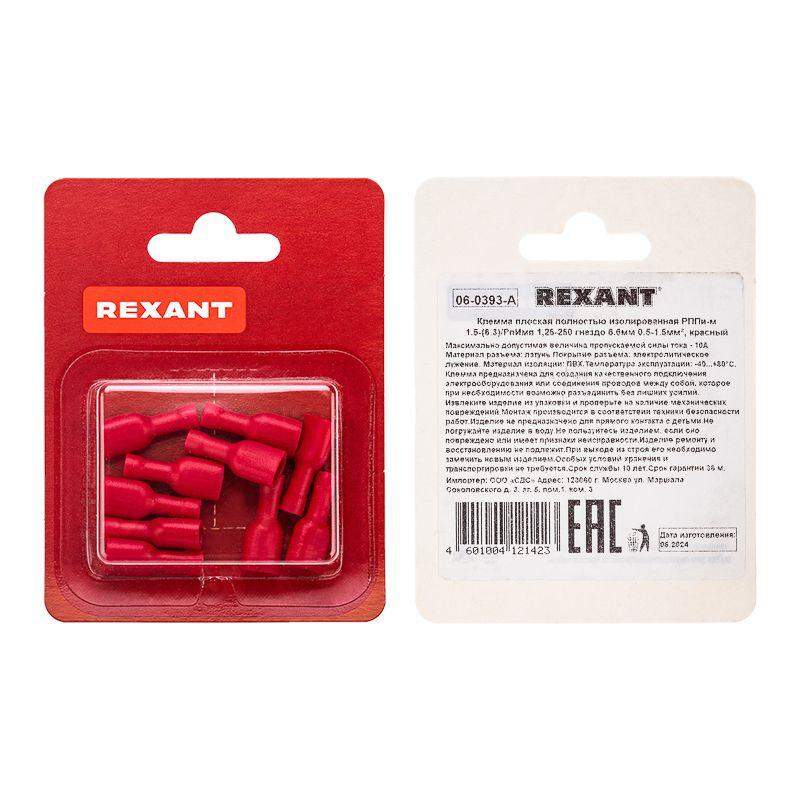 Клемма плоская полностью изолир. (гнездо-7.4мм) 0.5-1.5кв.мм (РППи-м 1.5-(6.3)/FDFD1.25-250) (блист.10шт) Rexant 06-0393-A