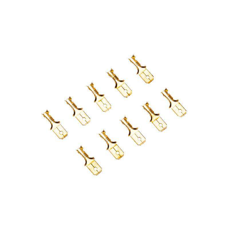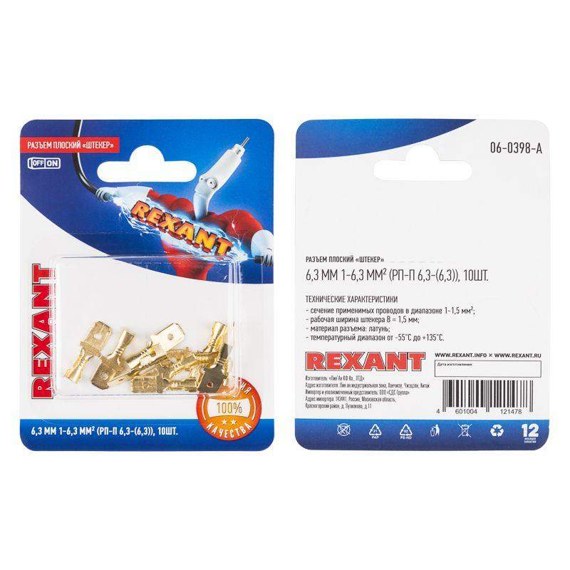 Клемма плоская (КП штекер – 6.3 мм) 0,5-1.5 мм2 (DJ617-6.3В) REXANT предназначена для создания качественного подключения электрооборудования или соединения проводов между собой, которое при необходимости возможно разъединить без лишних усилий. Такая клемма используется для оконцовывания многожильных медных проводов при монтаже мобильных электрических контактных соединений на подвижном составе (автомобиле-, вагоно-, самолето- и судостроении). Клемма плоская неизолированная (штекер) REXANT изготовлена из латуни. Обжатие производится специальными пресс-клещами (к примеру, ht-202 арт.12-3031 и 12-3032; ht-230 арт.12-3101 и 12-3001; ht-301 арт.12-3020) по жиле и по изоляции, что обеспечит максимальную прочность соединения с проводом. Размер контакта определяется шириной клеммы. Каждая клемма имеет отверстие, служащее фиксатором замкового типа с гнездовым разъемом. Основные характеристики: Температура эксплуатации: -55...+135 ?. Номинальное поперечное сечение: 1,5 мм2 Номинальная присоединительная способность: 0,75-1,5 мм2; Общая длина штекера: L = 20 мм Рабочая ширина штекера: B = 6.3 мм Применение плоских клемм дает возможность существенно ускорять электромонтажные работы, при этом появляется возможность неоднократного отсоединения и присоединения проводов.