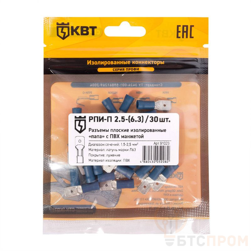 Разъем кабельный плоский изолированный папа РПИ-П 2.5-(6.3) (уп.30шт) КВТ 91023 фото в каталоге от BTSprom.by