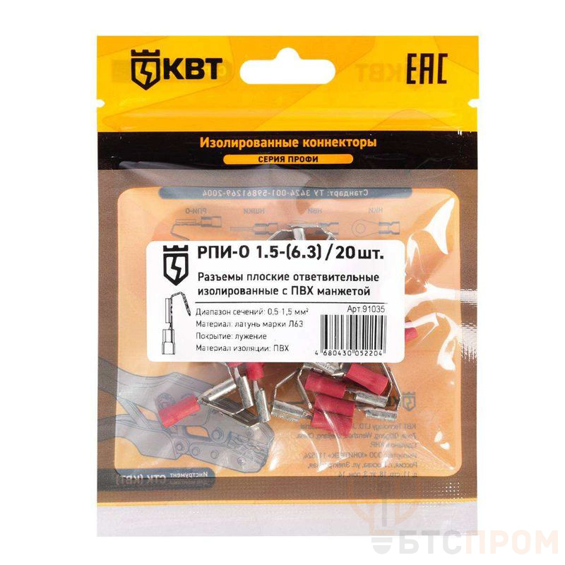 Разъем плоский ответвительный изолированный РПИ-О 1.5-(6.3) (уп.20шт) КВТ 91035 фото в каталоге от BTSprom.by