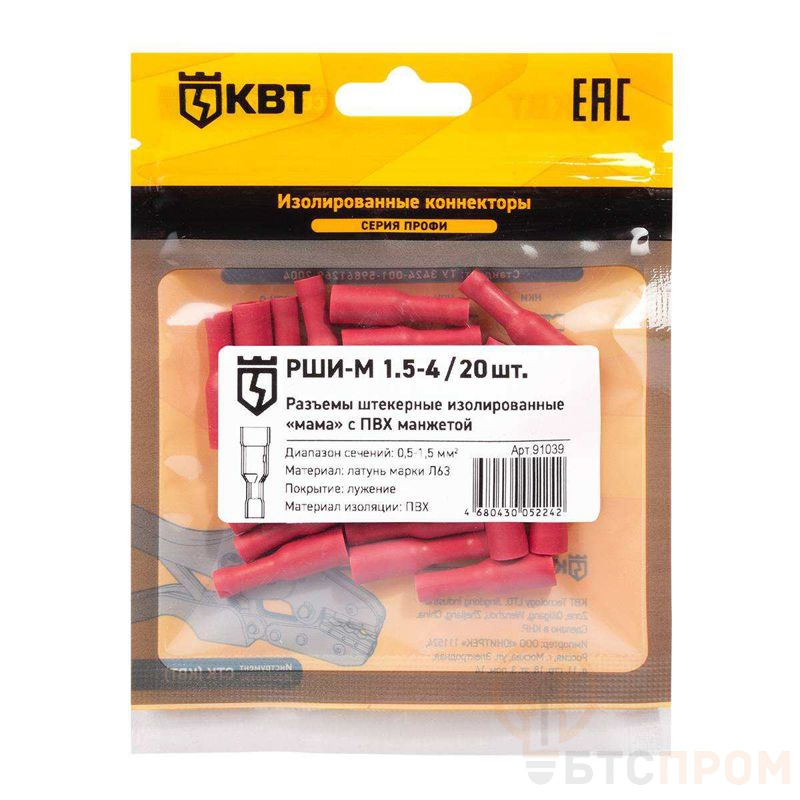 Разъем штекерный изолированный мама РШИ-М 1.5-4 (уп.20шт) КВТ 91039 фото в каталоге от BTSprom.by