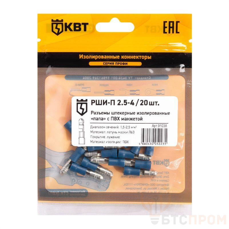 Разъем штекерный изолированный папа РШИ-П 2.5-4 (уп.20шт) КВТ 91038 фото в каталоге от BTSprom.by