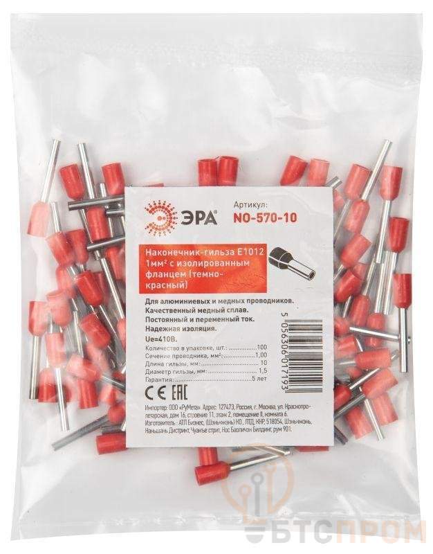 Наконечник-гильза Е1012 1кв.мм с изолированным фланцем темно-красн. (уп.100шт) NO-570-10 ЭРА Б0041452