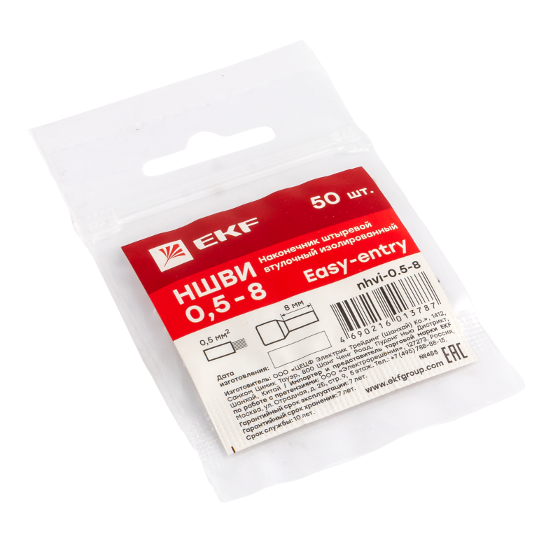 Наконечник штыревой втулочный изол. НШвИ 0.5-8 (уп.50шт) EKF nhvi-0.5-8 фото в каталоге от BTSprom.by