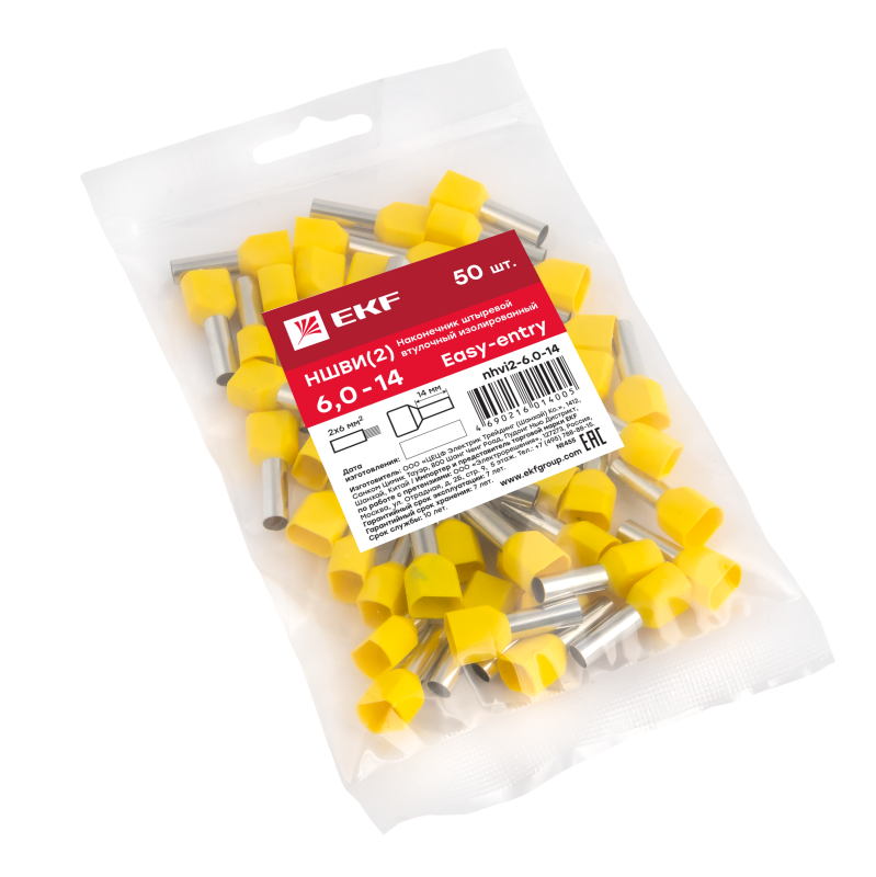 Одинарные и двойные втулочные наконечники (НШвИ и НШвИ2) EKF PROxima являются единственными специально разработанными наконечниками под опрессовку, которые полностью заменяют обязательный процесс облуживания многопроволочных медных проводов (типа ПВ-3, ПВС и т.п.) при монтаже различного электрооборудования. Втулочные наконечники состоят из медной луженой трубки, один конец которой развальцован для облегчения ввода многожильного провода и изолирующей манжеты из полипропилена.