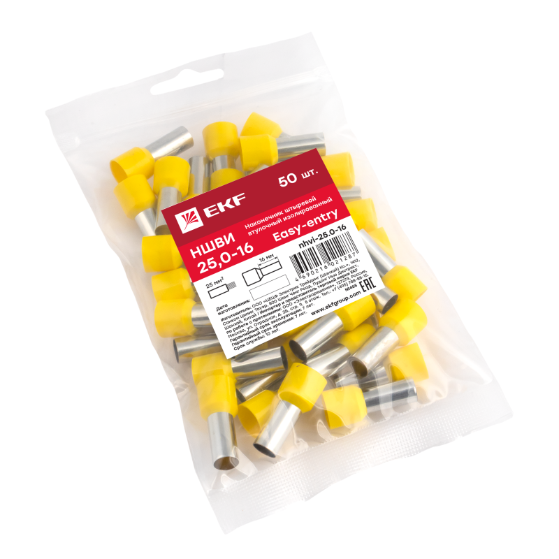 Наконечник штыревой втулочный изол. НШвИ 25.0-16 (уп.50шт) EKF nhvi-25.0-16 фото в каталоге от BTSprom.by