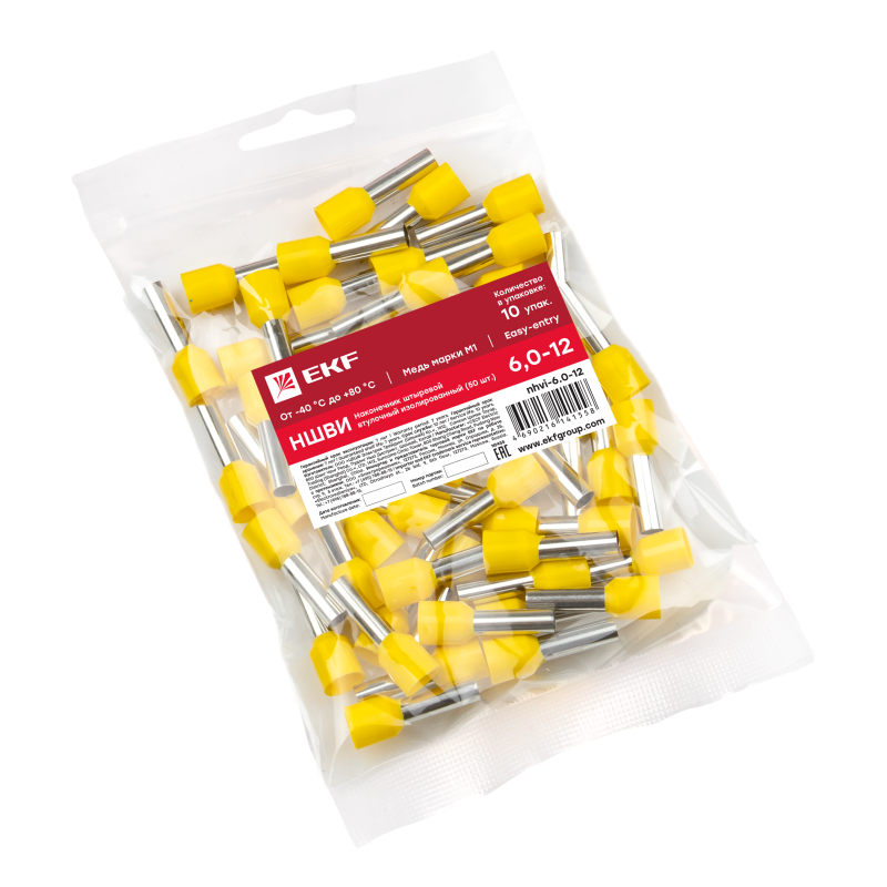 Наконечник штыревой втулочный изол. НШвИ 6.0-12 (уп.50шт) EKF nhvi-6.0-12 фото в каталоге от BTSprom.by