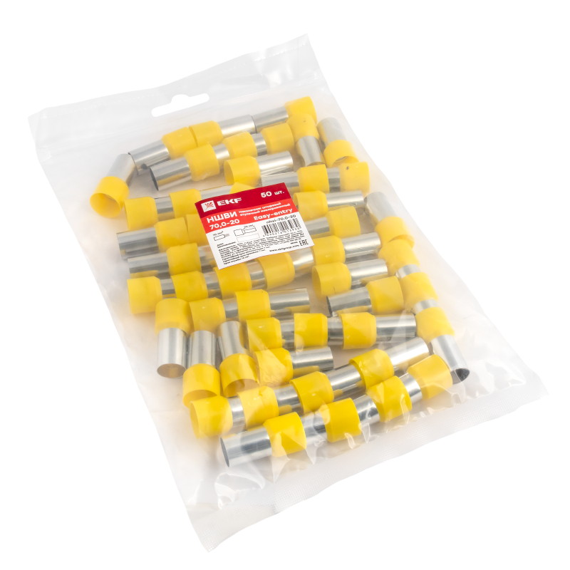 Одинарные и двойные втулочные наконечники (НШвИ и НШвИ2) EKF PROxima являются единственными специально разработанными наконечниками под опрессовку, которые полностью заменяют обязательный процесс облуживания многопроволочных медных проводов (типа ПВ-3, ПВС и т.п.) при монтаже различного электрооборудования. Втулочные наконечники состоят из медной луженой трубки, один конец которой развальцован для облегчения ввода многожильного провода и изолирующей манжеты из полипропилена.