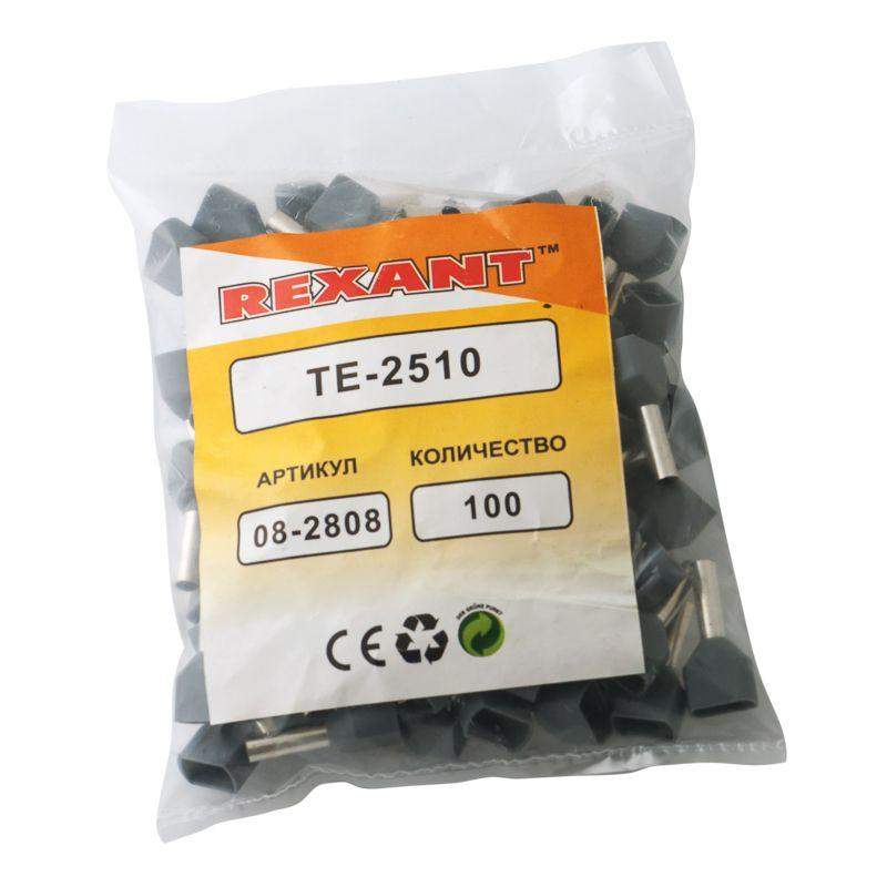 Наконечник штыревой втулочный изол. (НШВИ F-10мм) 2х2.5кв.мм (ТЕ-2510) сер. (уп.100шт) Rexant 08-2808