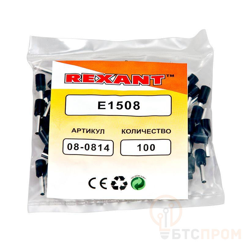 Наконечник штыревой втулочный изол. (НШВИ F-8мм) 1.5кв.мм (СЕ015008black) черн. (уп.100шт) Rexant 08-0814