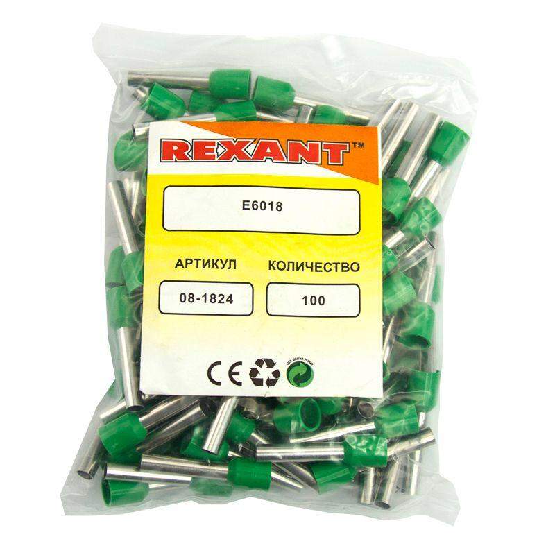 Наконечник штыревой втулочный изолир. (НШВИ F-18мм) 18ммх6кв.мм (E6018) зел. REXANT 08-1824 фото в каталоге от BTSprom.by