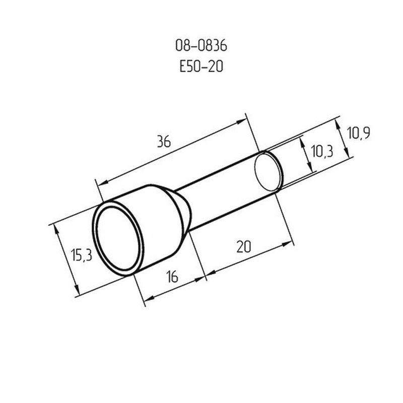 –Наконечник штыревой втулочный изолир. (НШВИ F-20мм) 50кв.мм (СЕ500020olive) олив. REXANT 08-0836