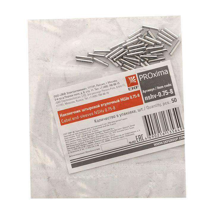 Наконечник штыревой втулочный НШв 0.75-8 (уп.50шт) PROxima EKF nshv-0.75-8 фото в каталоге от BTSprom.by
