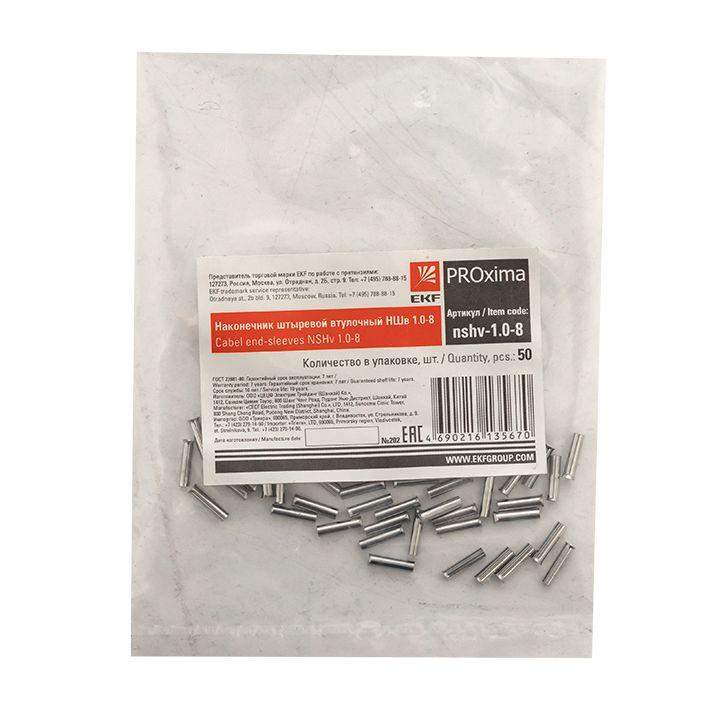 Наконечник штыревой втулочный НШв 1.0-8 (уп.50шт) PROxima EKF nshv-1.0-8 фото в каталоге от BTSprom.by