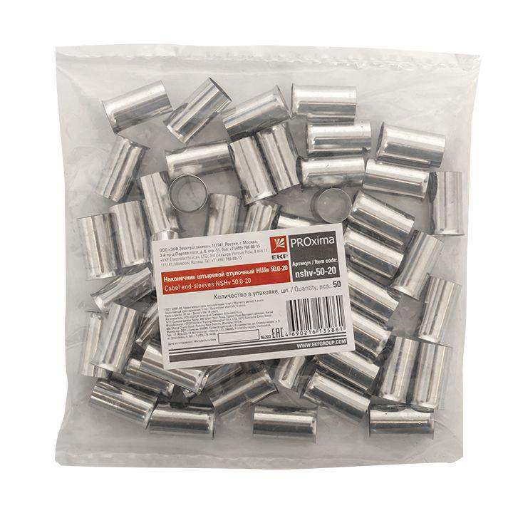 Наконечник штыревой втулочный НШв 50.0-20 (уп.50шт) PROxima EKF nshv-50-20 фото в каталоге от BTSprom.by