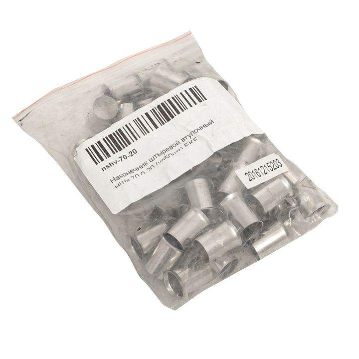 Втулочные наконечники (НШв) являются единственными специально разработанными наконечниками под опрессовку, которые полностью заменяют обязательный процесс облуживания многопроволочных медных проводов (типа ПВ-3, ПВС и т. п.) при монтаже различного электрооборудования. Втулочные наконечники представляют собой медную луженую трубку, один конец которой развальцован для облегчения ввода многожильного провода.