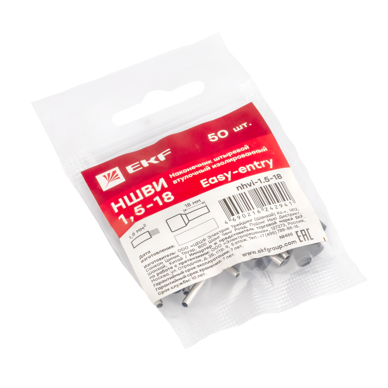 Одинарные и двойные втулочные наконечники (НШвИ и НШвИ2) EKF PROxima являются единственными специально разработанными наконечниками под опрессовку, которые полностью заменяют обязательный процесс облуживания многопроволочных медных проводов (типа ПВ-3, ПВС и т.п.) при монтаже различного электрооборудования. Втулочные наконечники состоят из медной луженой трубки, один конец которой развальцован для облегчения ввода многожильного провода и изолирующей манжеты из полипропилена.