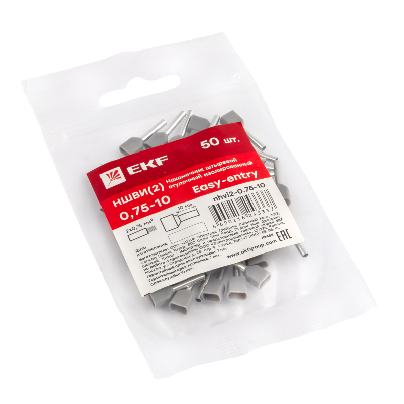 Наконечник штыревой втулочный НШвИ(2) 0.75-10 (уп.50шт) EKF nhvi2-0.75-10 фото в каталоге от BTSprom.by