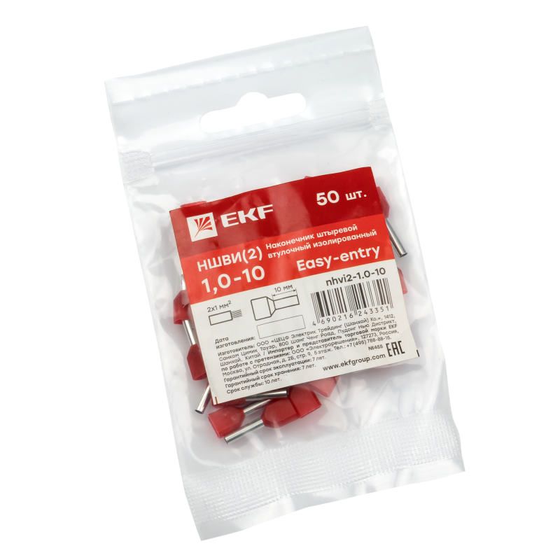 Наконечник штыревой втулочный НШвИ(2) 1.0-10 (уп.50шт) EKF nhvi2-1.0-10 фото в каталоге от BTSprom.by