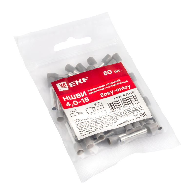 Наконечник штыревой втулочный НШвИ 4.0-18 (уп.50шт) EKF nhvi-4.0-18 фото в каталоге от BTSprom.by